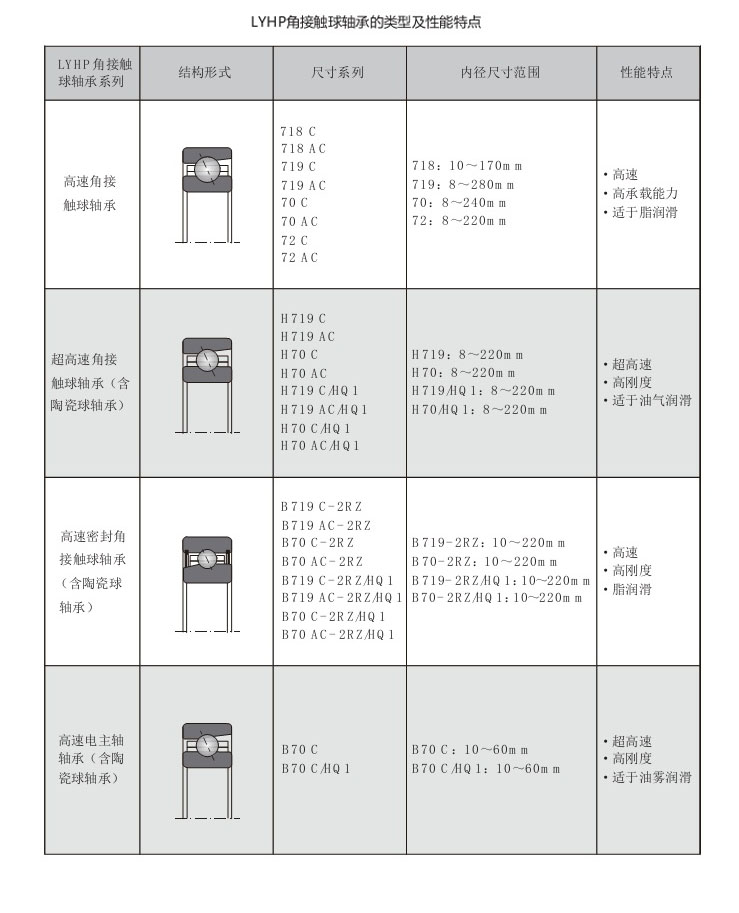 LYHP角接觸軸承的類型及性能點(圖表)